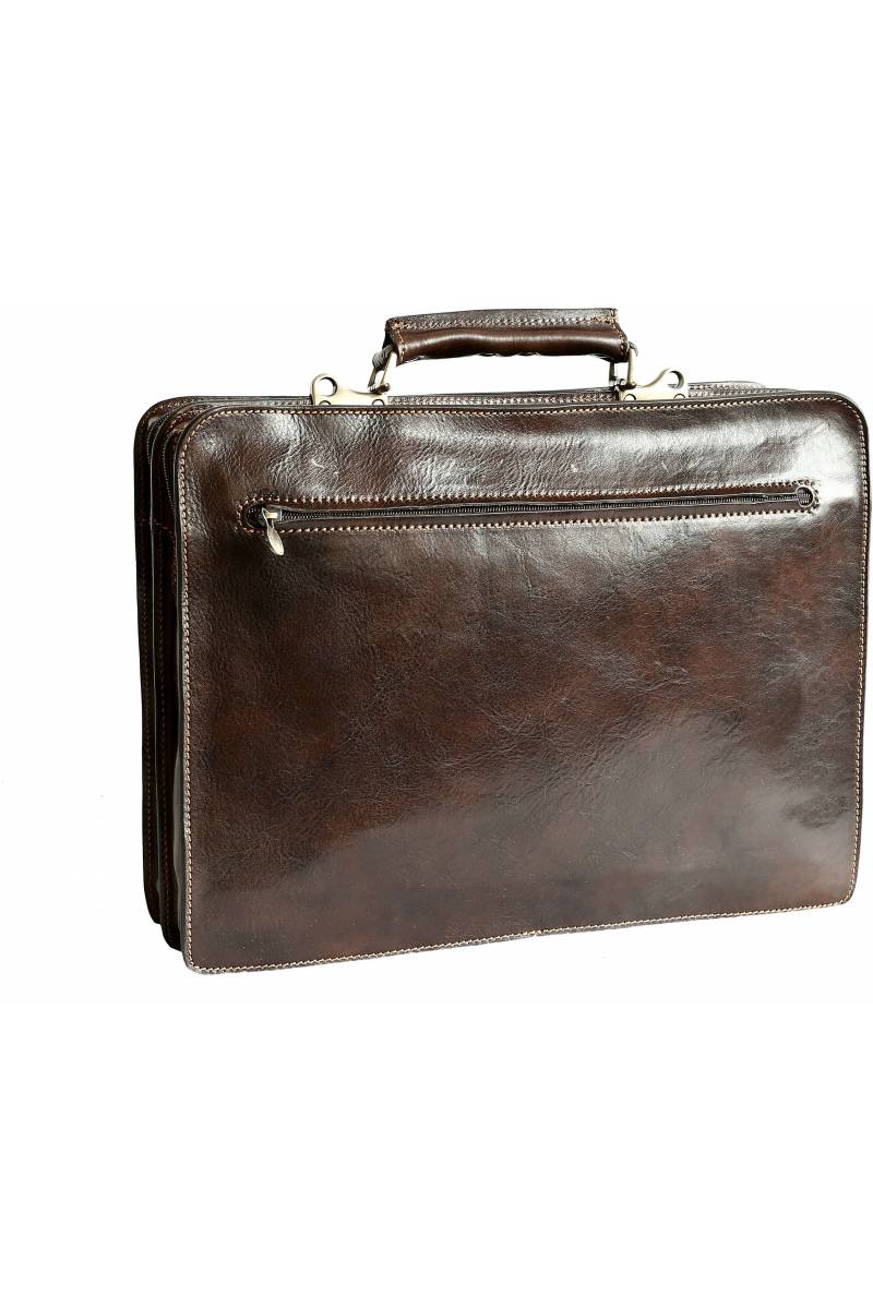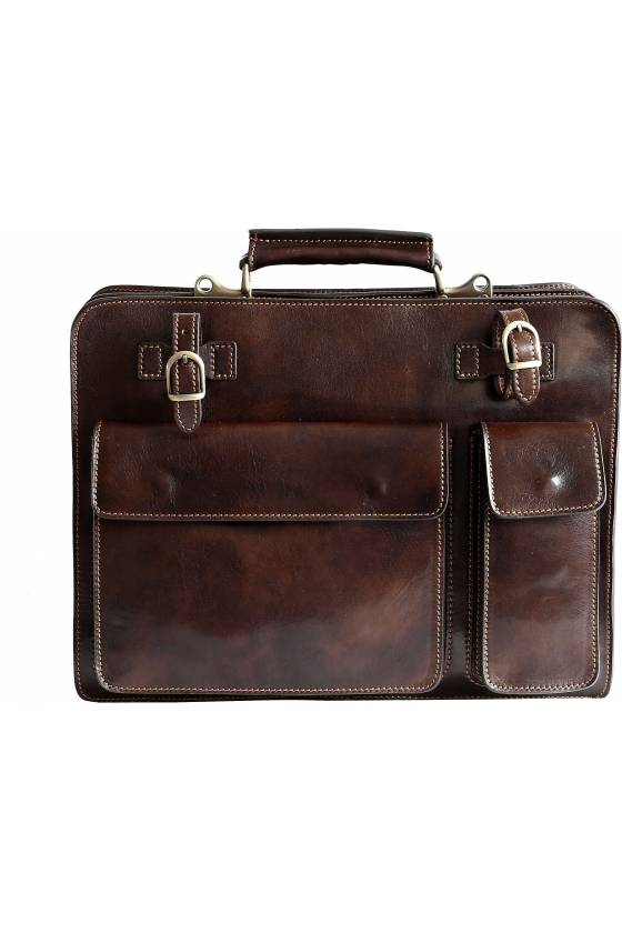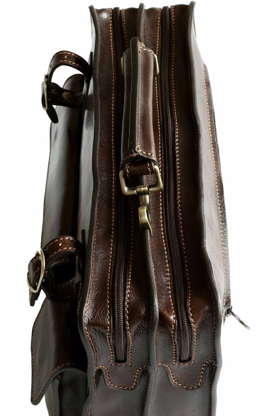 Servieta barbati din piele naturala vachetta, la interior doua compartimente individuale inchise cu fermoar, suporturi pe captuseala pentru pixuri, carduri, celular, buzunare aplicate pe fata si inchise cu butoni magnetici, curele reglabile pentru ziar/umbrela, curea de umar din piele reglabila si detasabila, captuseala din piele naturala spalt, constructie rigida, greutate 1,2 kg, pentru un laptop de 15 '', buzunar exterior cu fermoar. Made in Italy.