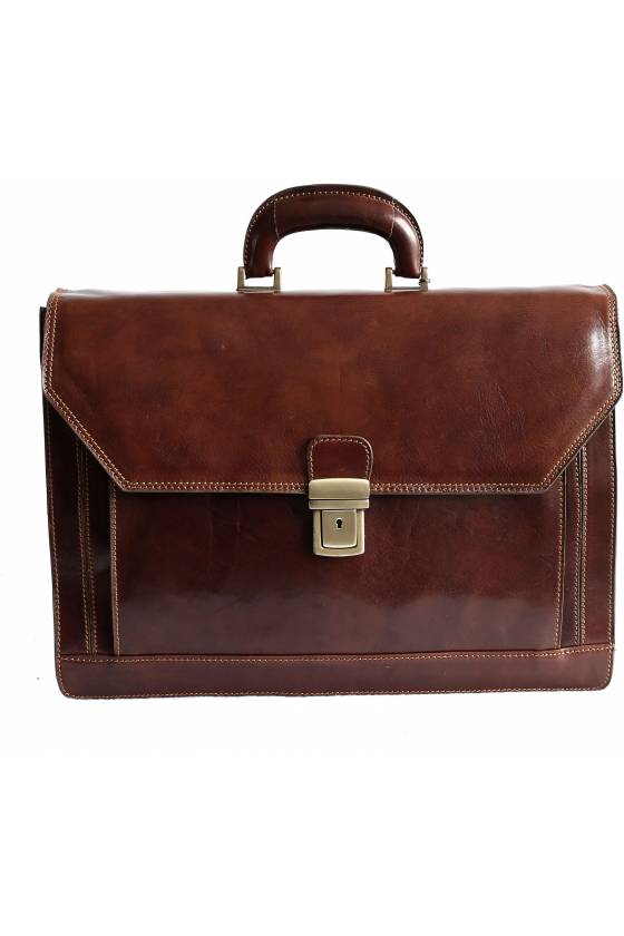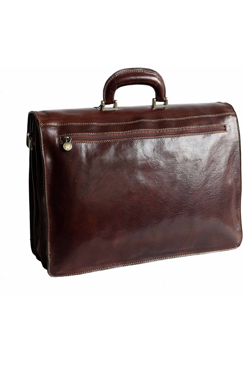 Geanta de barbati din piele naturala vachetta cu trei compartimente si un buzunar frontal, curea de umar din piele reglabila si detasabila, buzunare multifunctionale pe captuseala (portcarduri, portstilouri, portcelular), constructie rigida, pentru un laptop de 15 '', greutate 1,8 kg, inchidere cu capac din piele si un accesoriu metalic. Made in Italy .