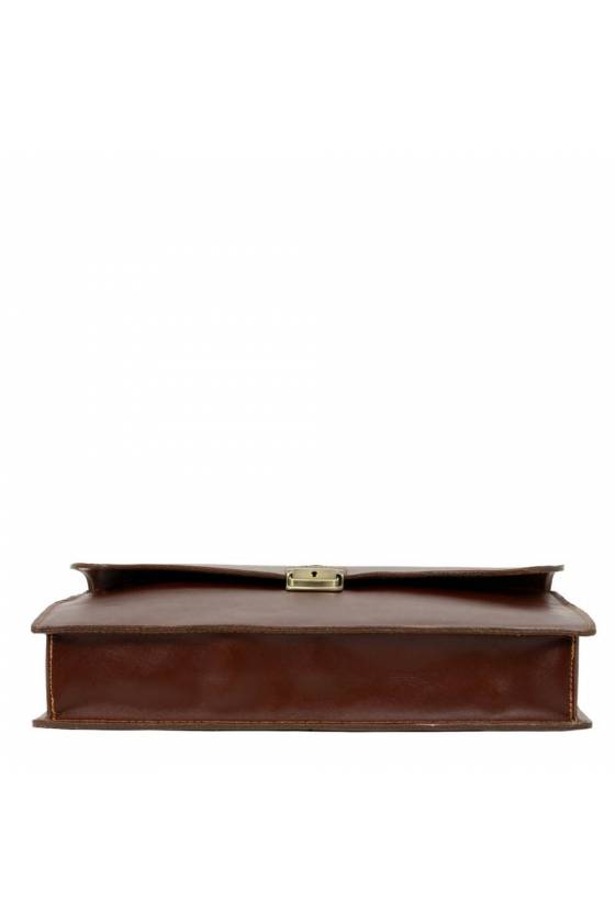 Servieta dama din piele naturala cu un compartiment, un buzunar interior si unul exterior inchis cu fermoar, inchidere cu buton metalic, curea de umar din piele naturala, detasabila.Fabricata in Italia.