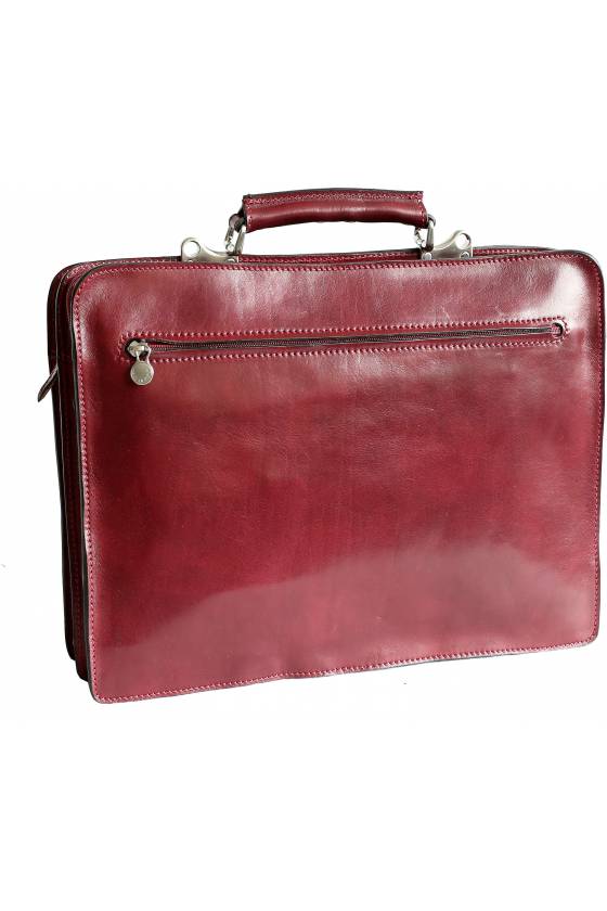 Geanta office din piele naturala vachetta, la interior doua compartimente individuale inchise cu fermoar, suporturi pe captuseala pentru pixuri, carduri, celular, buzunare aplicate pe fata si inchise cu butoni magnetici, curele reglabile pentru ziar/umbrela, curea de umar din piele reglabila si detasabila, captuseala din piele naturala spalt, constructie rigida, greutate 1,2 kg, pentru un laptop de 15 '', buzunar exterior cu fermoar. Made in Italy.