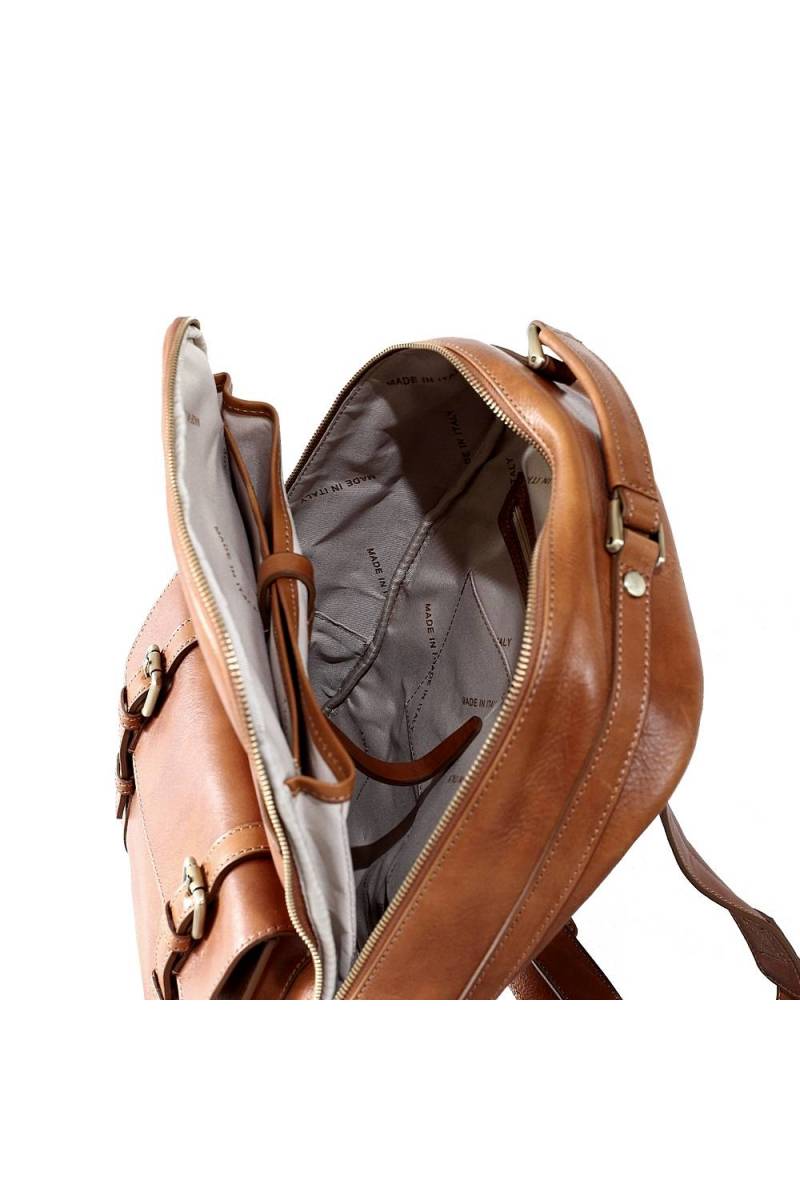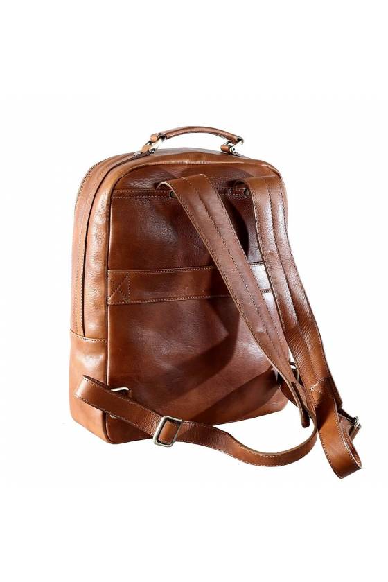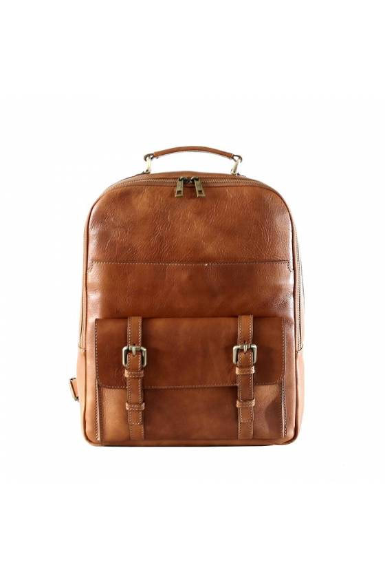 Rucsac barbati pentru laptop din piele naturala, un compartiment principal inchis cu fermoar metalic, buzunar interior inchis cu fermoar, buzunare pentru telefon si alte accesorii, compartiment cu protectie pentru laptop de 15'', compartiment pentru tableta, buzunar exterior aplicat pe fata rucsacului inchis cu butoni magnetici, pe spate curea pentru atasarea rucsacului pe troler, baretele sunt din piele naturala, reglabile.Fabricat in Italia.