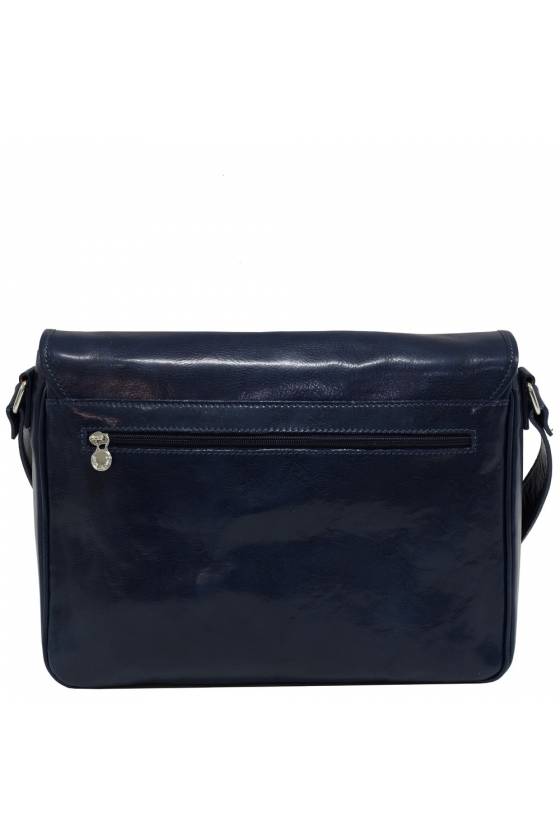 • Geanta messenger port laptop, din piele naturala vachetta, bleumarin, util land, GB108E
