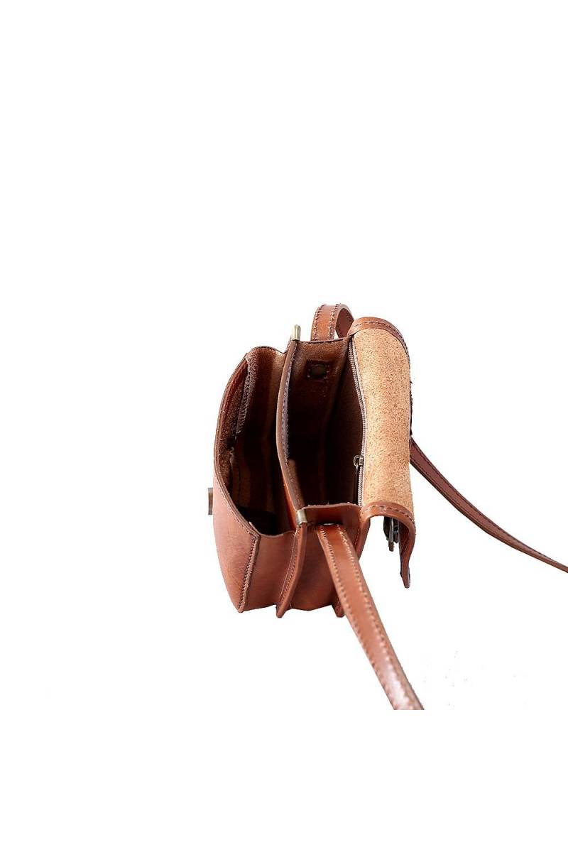 Geanta dama de umar, crossbody, din piele naturala vachetta, doua compartimente, un buzunar interior, inchidere cu capsa magnetica, curea de umar din piele naturala, reglabila.Fabricata in Italia.