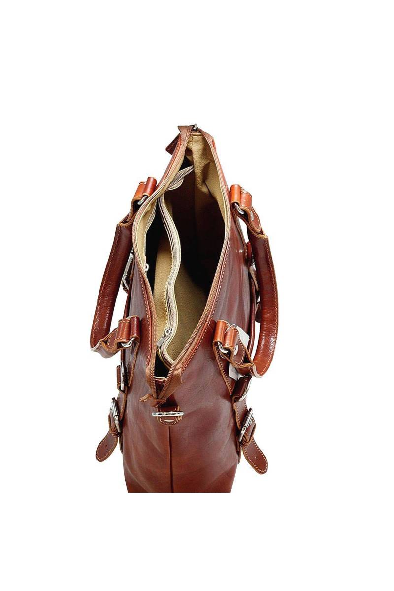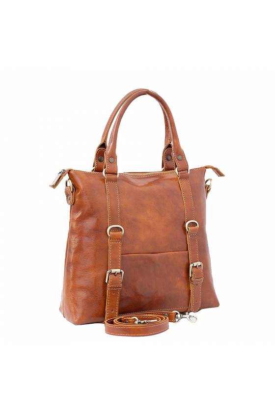 Geanta dama casual din piele naturala vachetta, doua compartimente separate de un buzunar interior, inchidere cu fermoar, doua buzunare interioare si doua exterioare, curea de umar din piele naturala, reglabila si detasabila.Fabricata in Italia.