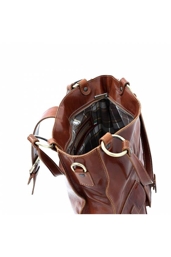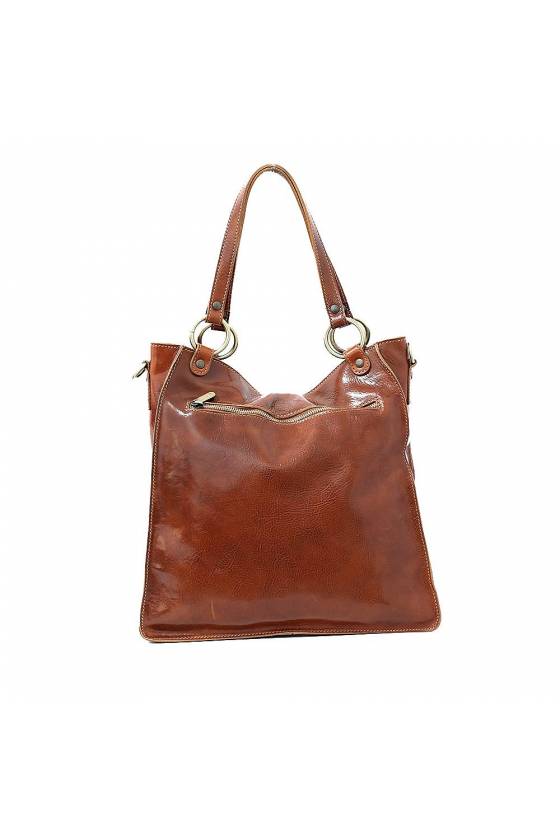 Geanta dama din piele naturala vachetta, un compartiment principal, un buzunar interior inchis cu fermoar, un buzunar pentru telefon prin pe captuseala gentii, un buzunar exterior pe spatele gentii inchis cu fermoar, doua buzunare frontale inchise cu capsa magnetica, inchiderea se face cu fermoar metalic peste care vine o curea din piele. Curea de umar din piele naturala,detasabila si reglabila. Fabricata in Italia.