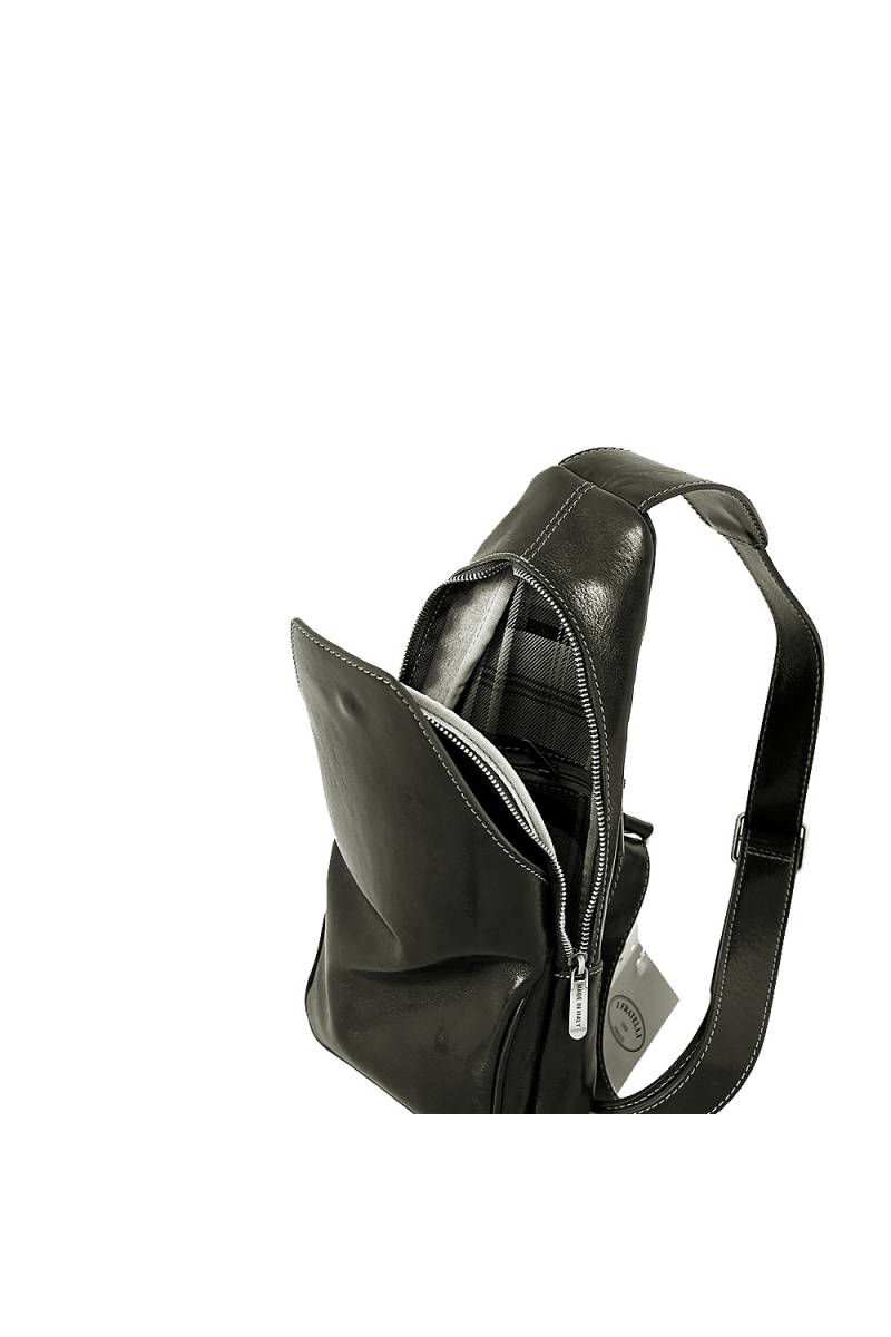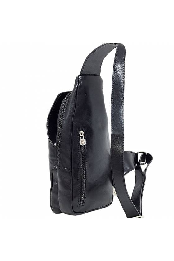 Banduliera din piele naturala vachetta, un compartiment principal inchis cu fermoar, un buzunar interior, suport pentru pixuri, un buzunar frontal inchis cu un buton magnetic si un buzunar posterior inchis cu fermoar, bareta de umar este din piele naturala,reglabila.Fabricata in Italia.