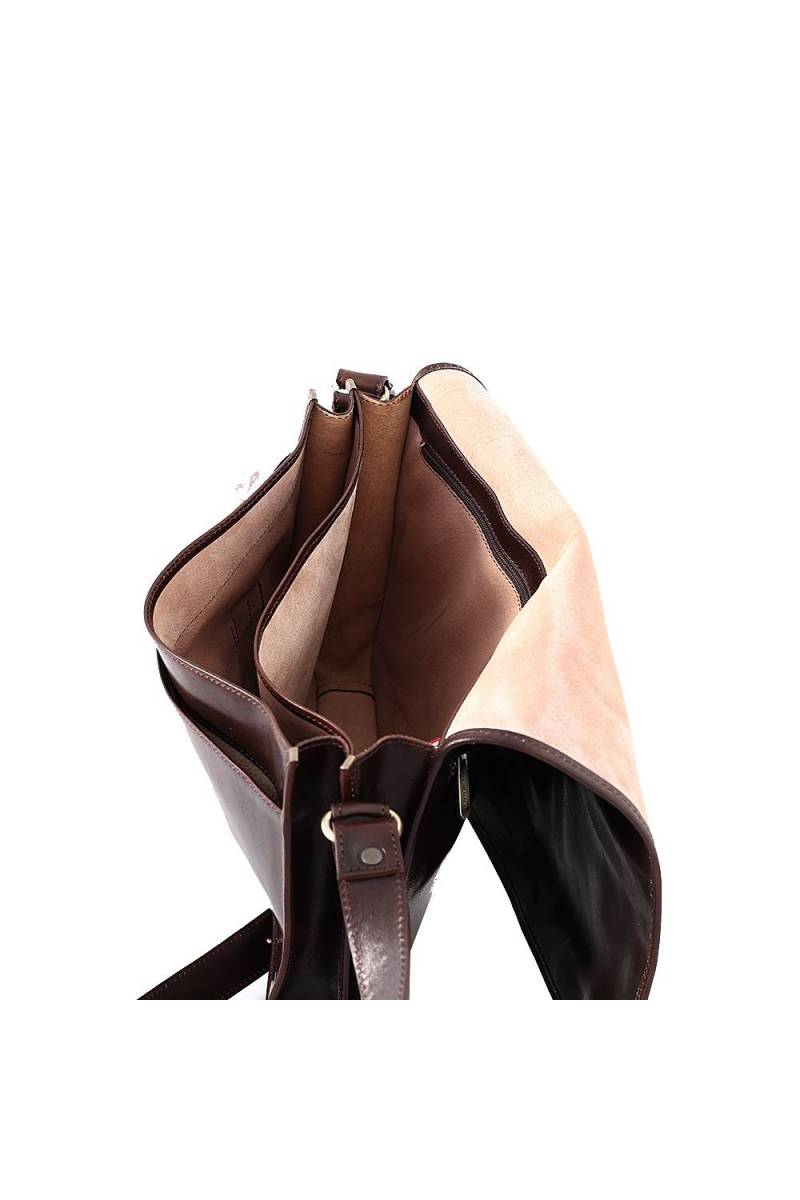 Geanta dama messenger din piele naturala vachetta, doua compartimente principale plus un buzunzr mare frontal, un buzunar interior pentru telefon, un buzunar exterioar, posterior, buzunar la interior pentru portstilou,portcard, inchiderea se face cu capac cu doi butoni magnetici, cureaua de umar este detasabila.Fabricata in Italia.