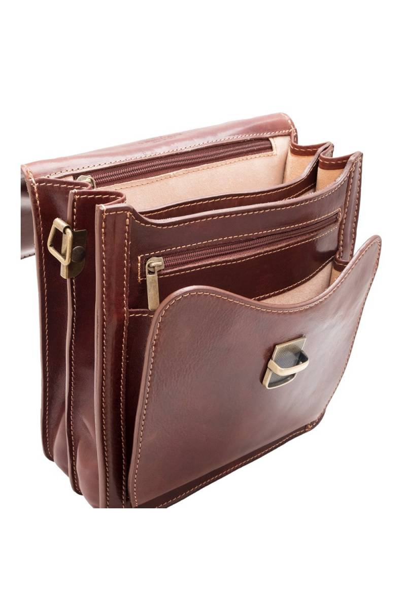 Borseta barbati din piele naturala vachetta, doua compartimete principale plus un buzunar atasat frontal, un buzunar exterior, posterior cu fermoar, curea de umar din piele naturala,detasabila si reglabila.Fabricata in Italia.